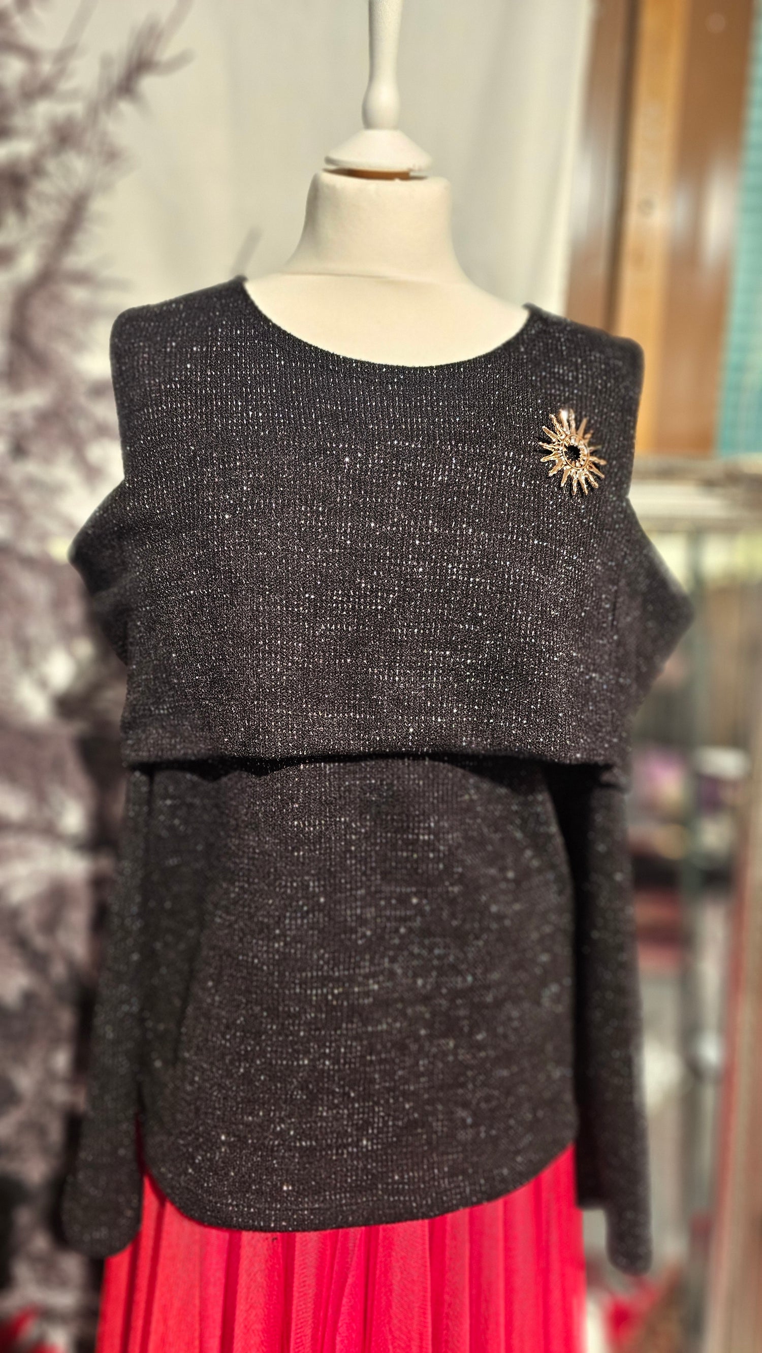 LoppuunmyytyMusta sädehtivä mekko mesh hihoilla