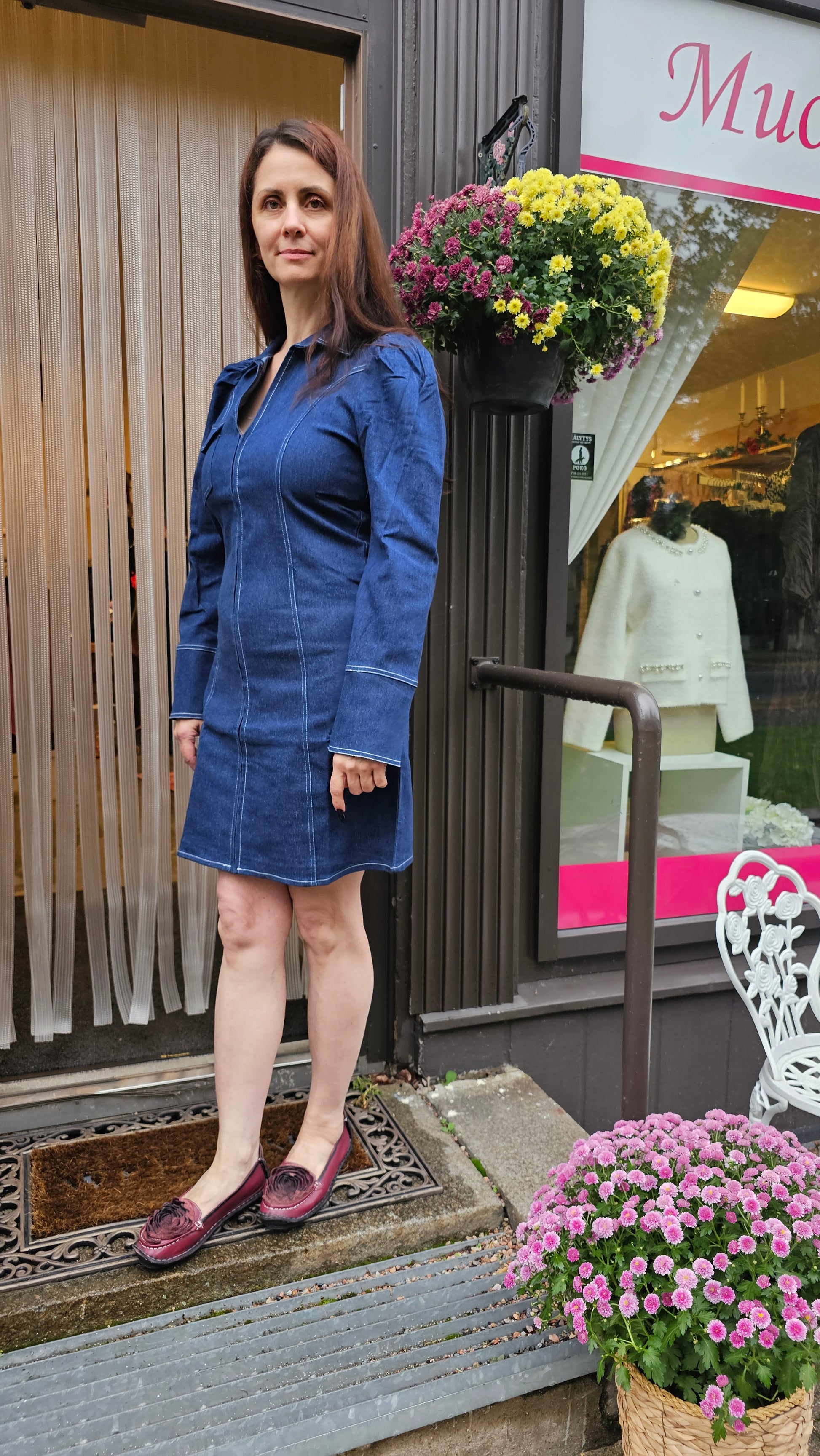 Klassillinen ja trendikäs farkkumekko on aina muodikas.Saatavana uutuus väri tumman sininen, joka sopii hyvin vuoden ajoista riippumatta. Kauniit tikkaukset,muodikkaat hihat tuovat ilmettä vaatteeseen. Yhdistä nilkkureihin, tennareihin tai saappaisiin. Sopii niin arkeen kuin rennompaan juhlaan. Ajaton denim on aina muodissa.