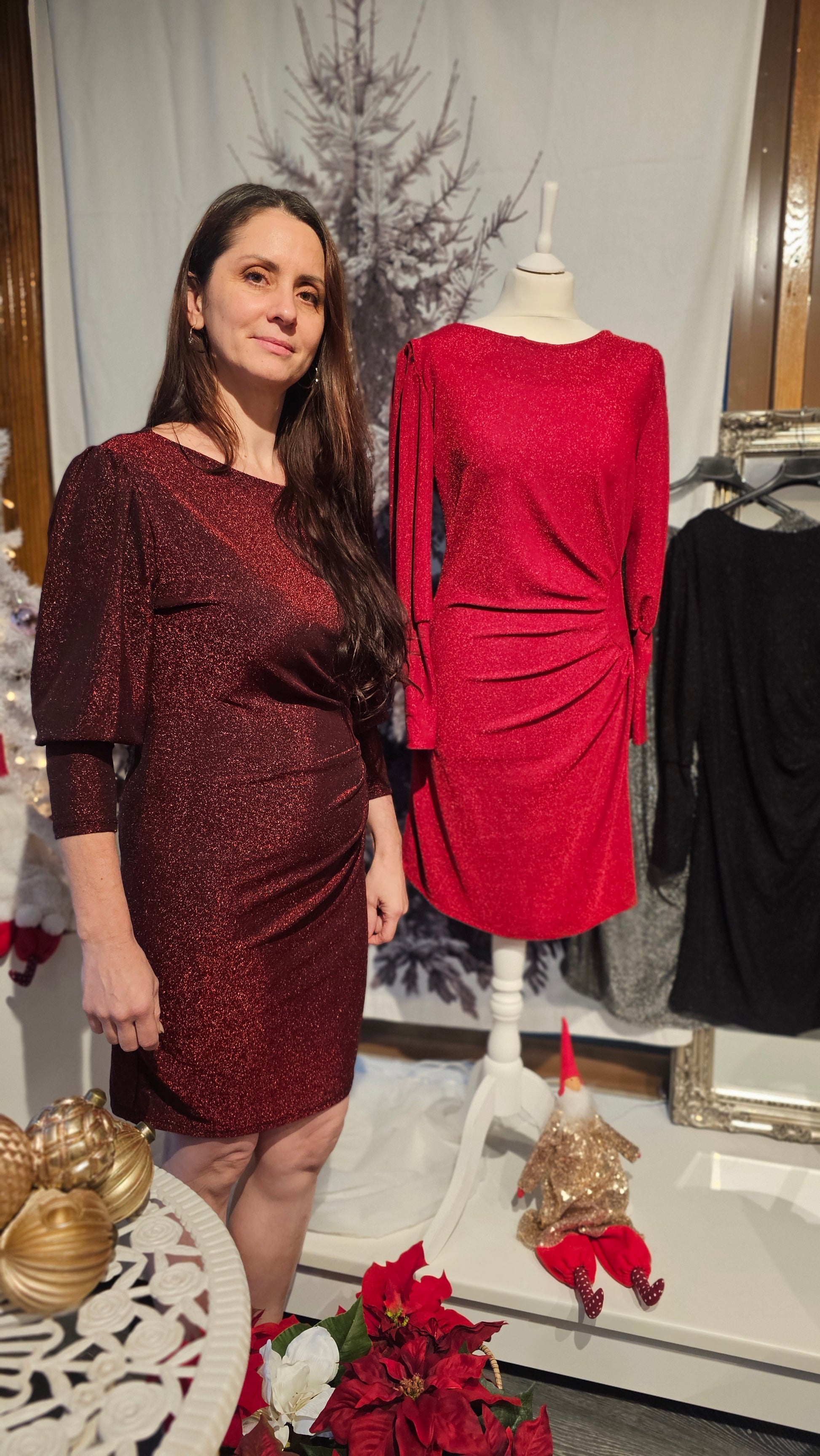Etsitkö täydellistä juhlamekkoa pikkujouluihin, uuden vuoden juhliin tai talven tärkeisiin tilaisuuksiin? Tämä upeasti kimalteleva juhlamekko on suunniteltu sinulle, joka haluat yhdistää näyttävyyden, naisellisuuden ja mukavuuden. Mekko tuo esiin kauniit linjat, korostaa vartalon parhaita puolia ja tuntuu samalla miellyttävältä koko illan ajan. Se on vaatekaapin varma valinta, kun haluat loistaa ilman kompromisseja.