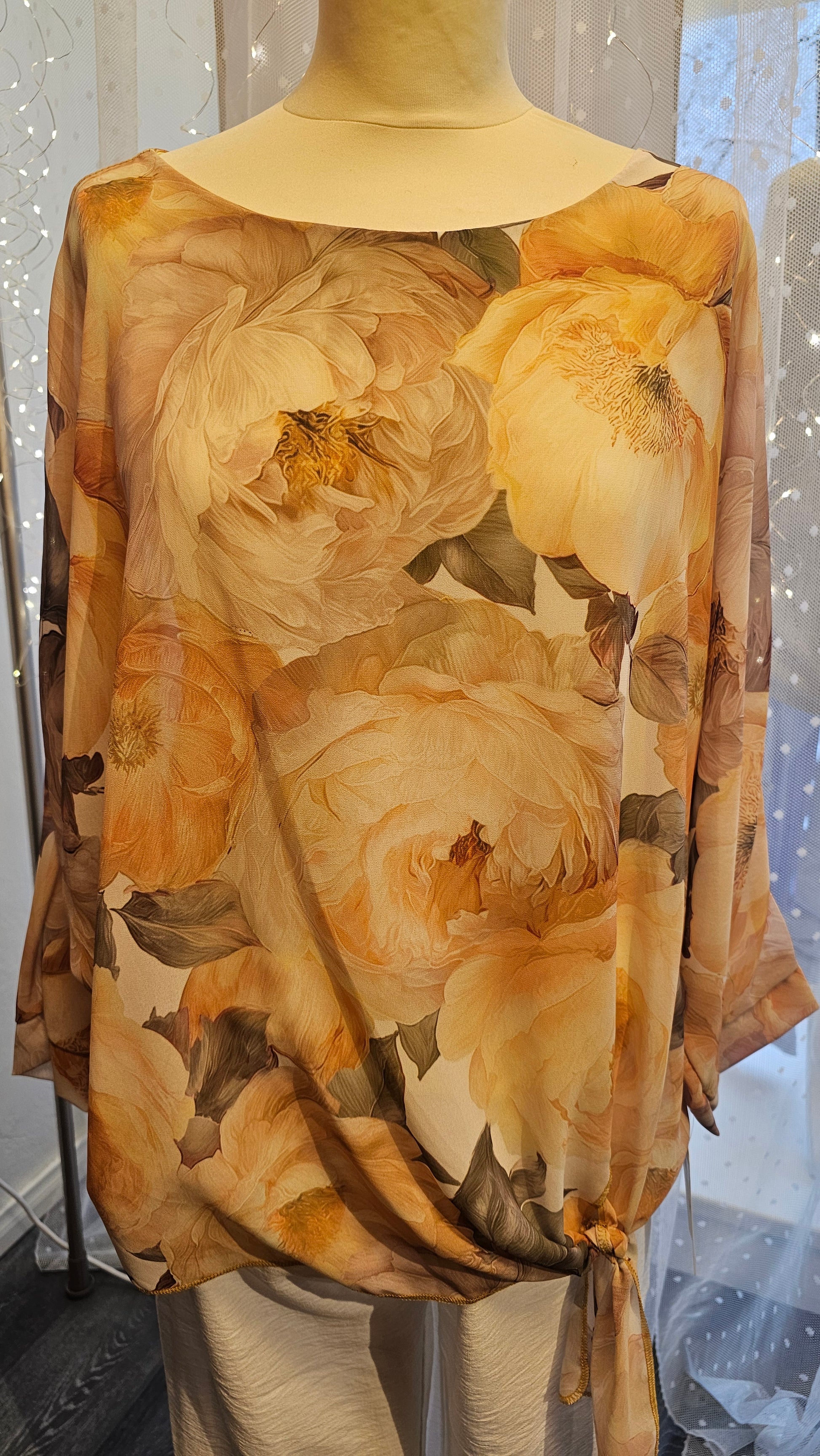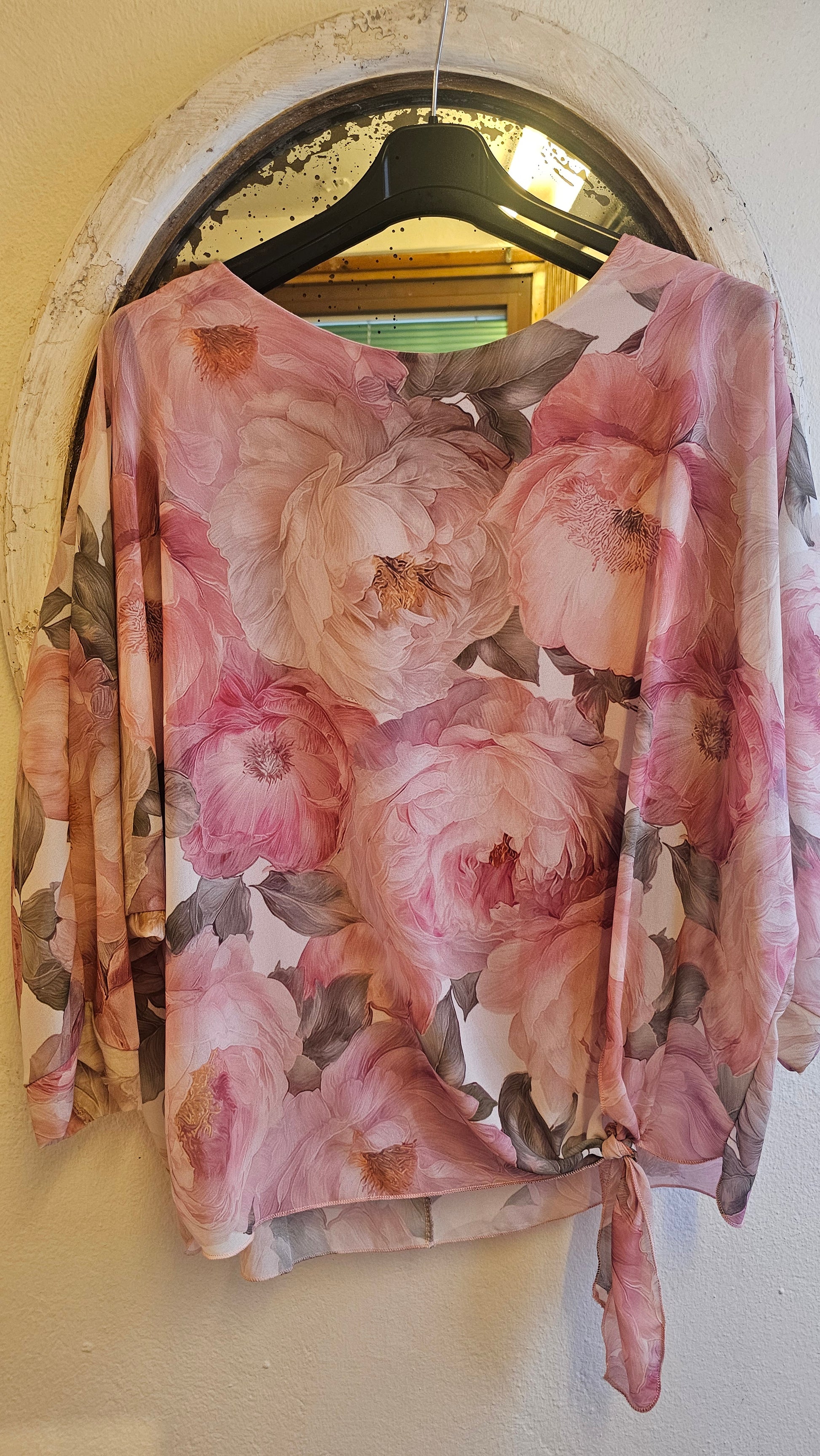Nyt herkutellaan hempeillä väreillä. Tässä kiva yksityiskohta helmassa. Voit solmia reunan sopivan kokoiseksi. Leppakkohihainen antaa tilaa rinnalle. Pyöreä pääntie. Sisällä vuori. Yksi koko. Rinnan ympärys n.150cm.