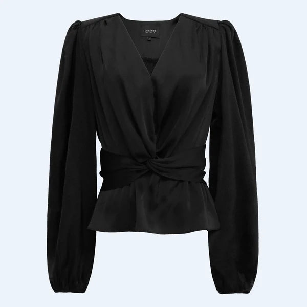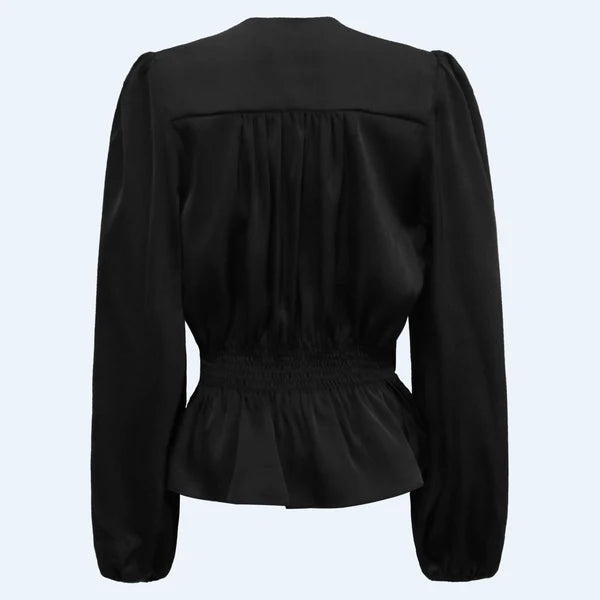 Yksinkertaisen tyylikäs pusero juhlaan. V-pääntie ja pitkät hihat tarjoavat ajattoman tyylin.Kaunis yksityiskohta vyötäröllä. Pitkät hihat. Sopii hyvin hameen sekä housujen kanssa. Polysteriä.