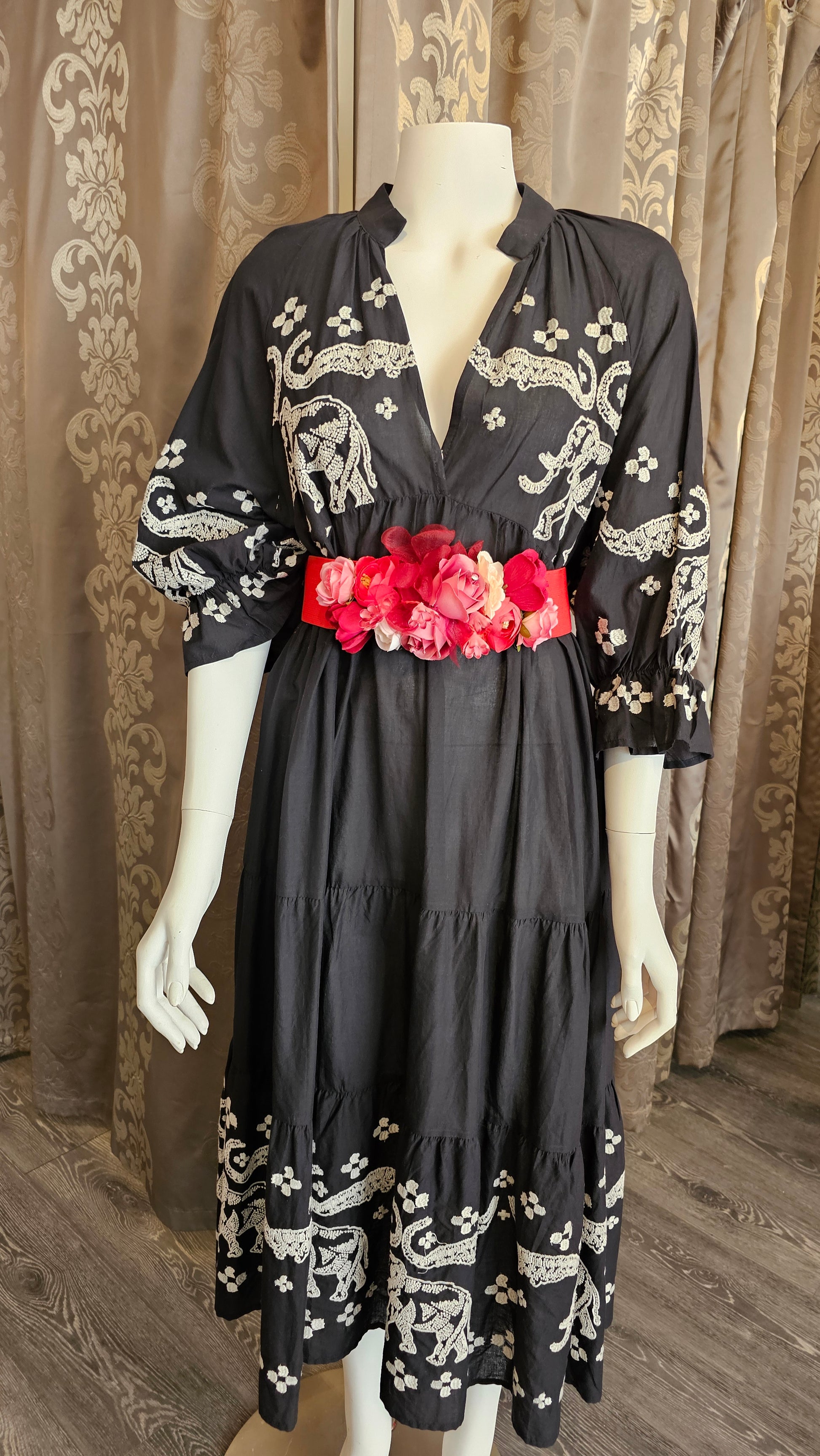 Musta boho-mekko kirjailulla