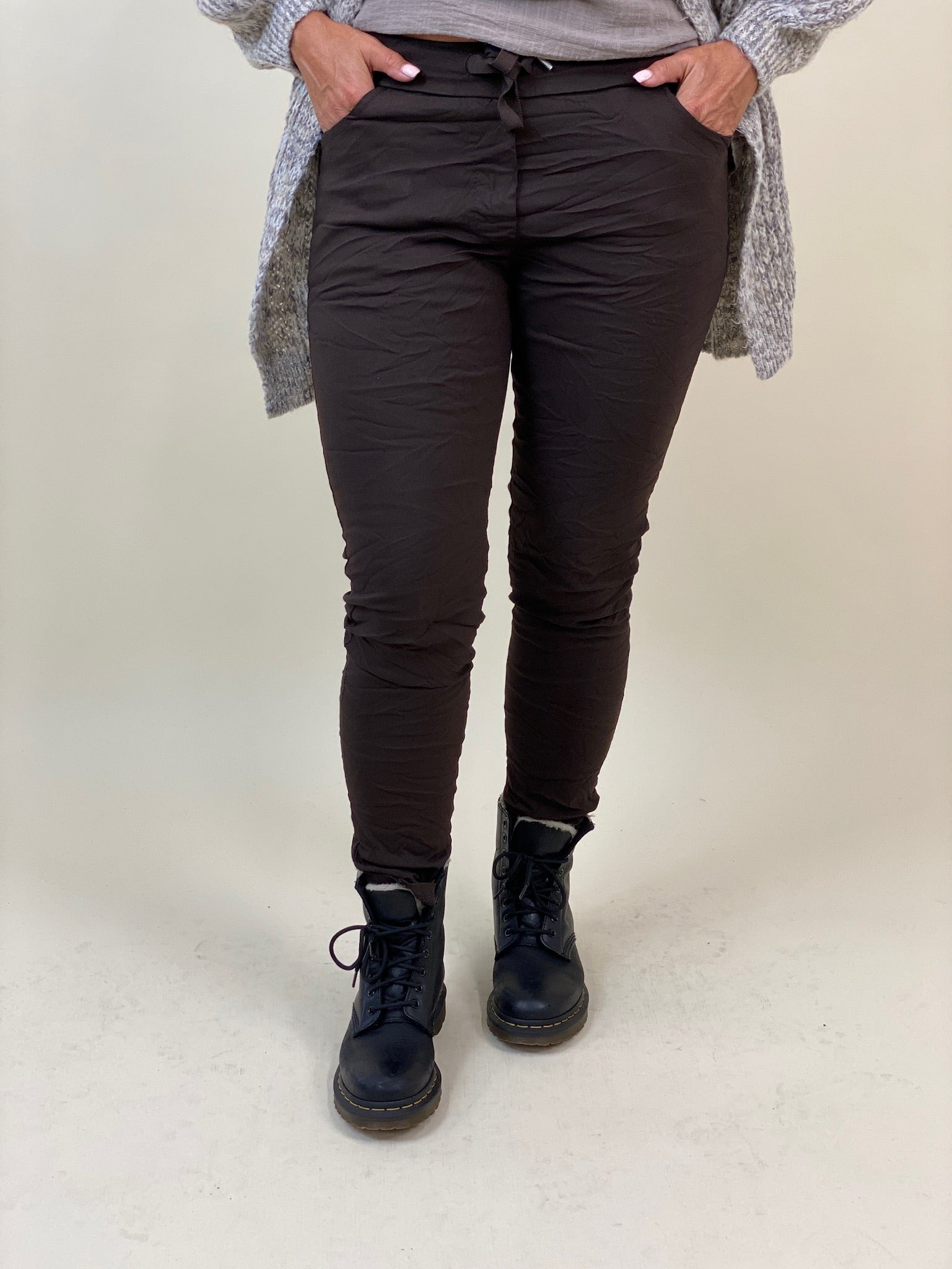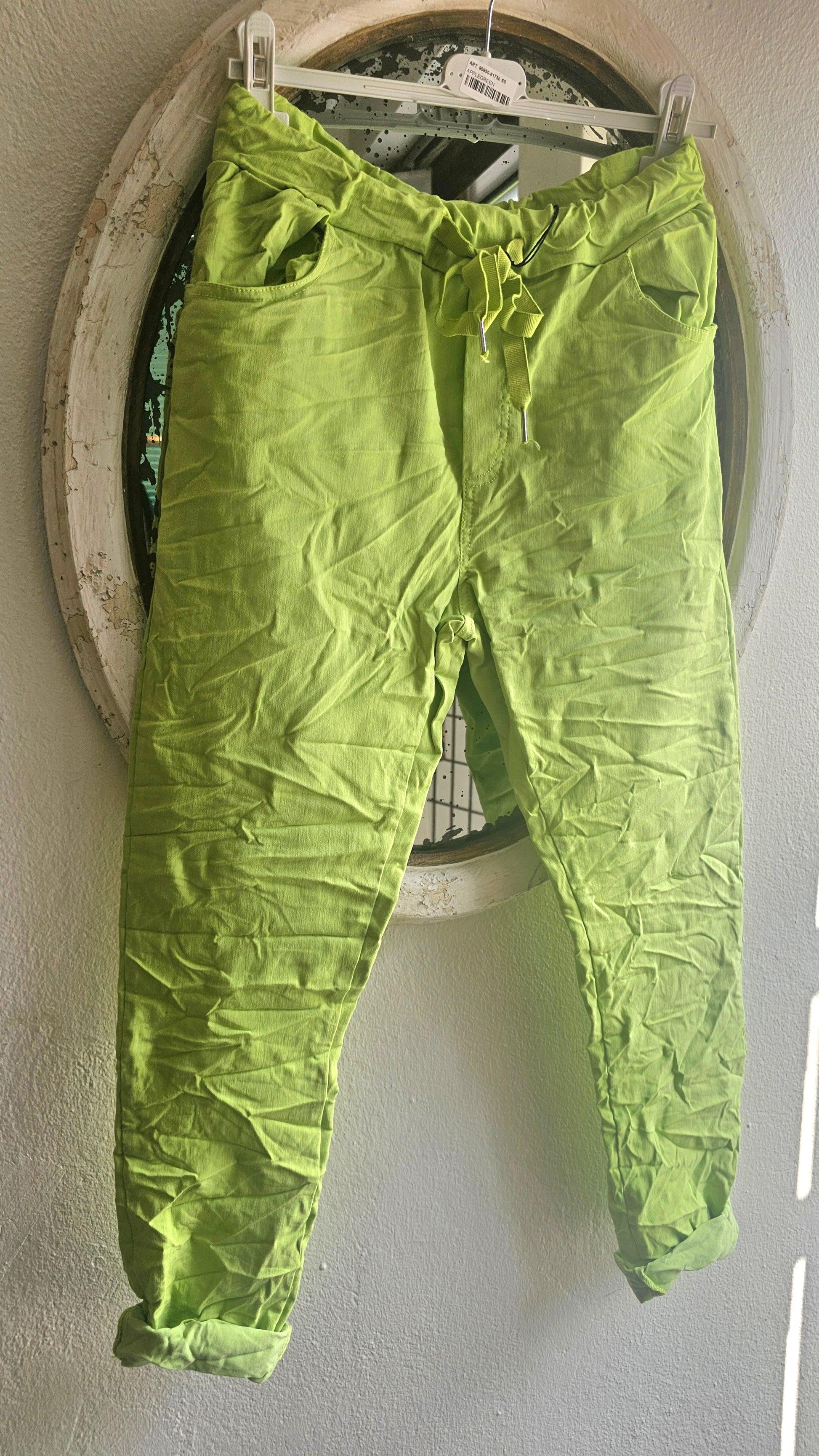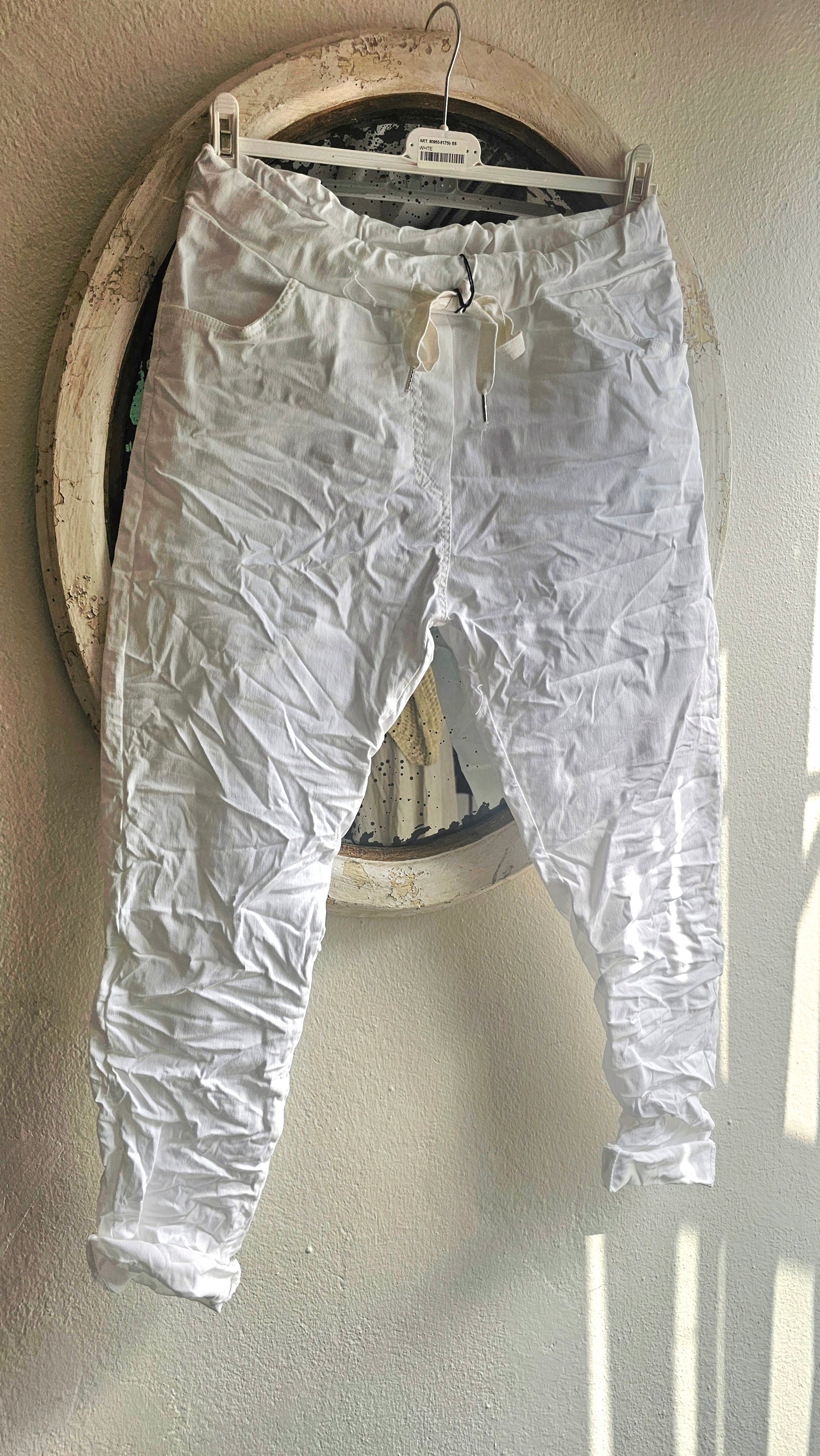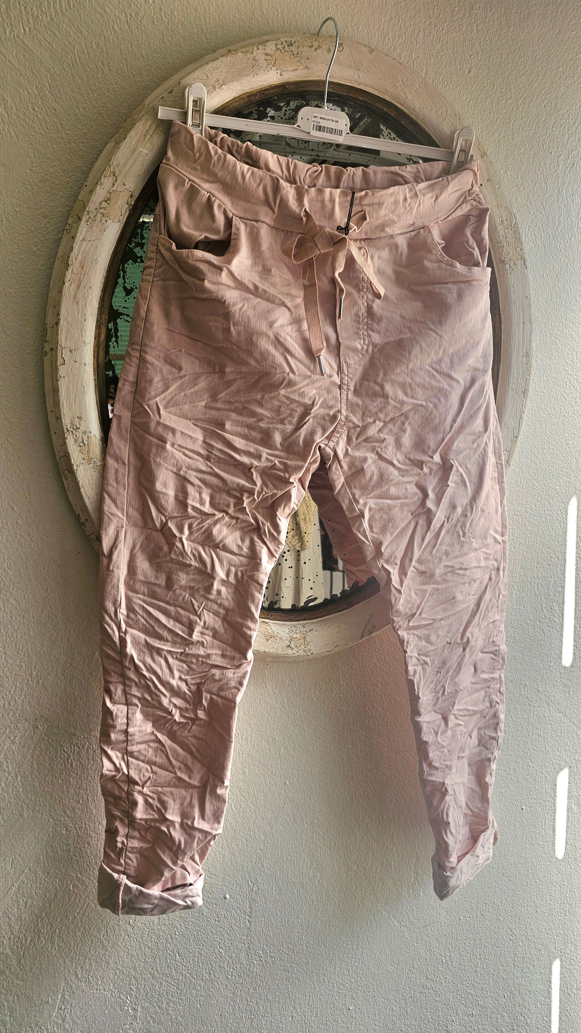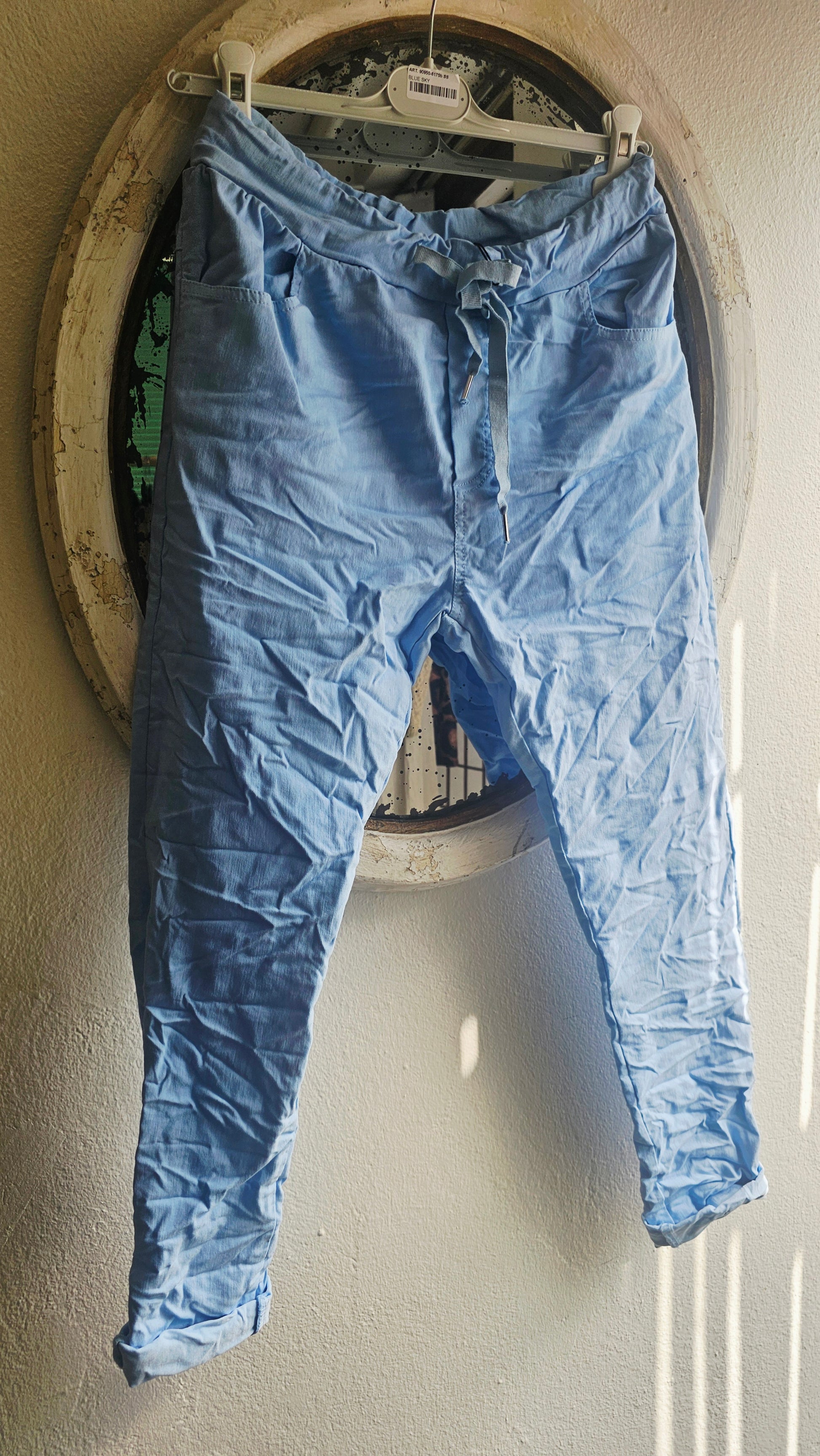 Nämä joustohousut ovat ihan kestosuosikit. Taskut edessä ja takana. Vyötäröllä kuminauha ja kiristysnyöri. Yhden koon joka menee kokoon 38-42. Vyötärö ei venytettynä n.60cm ja venytettynä 98cm