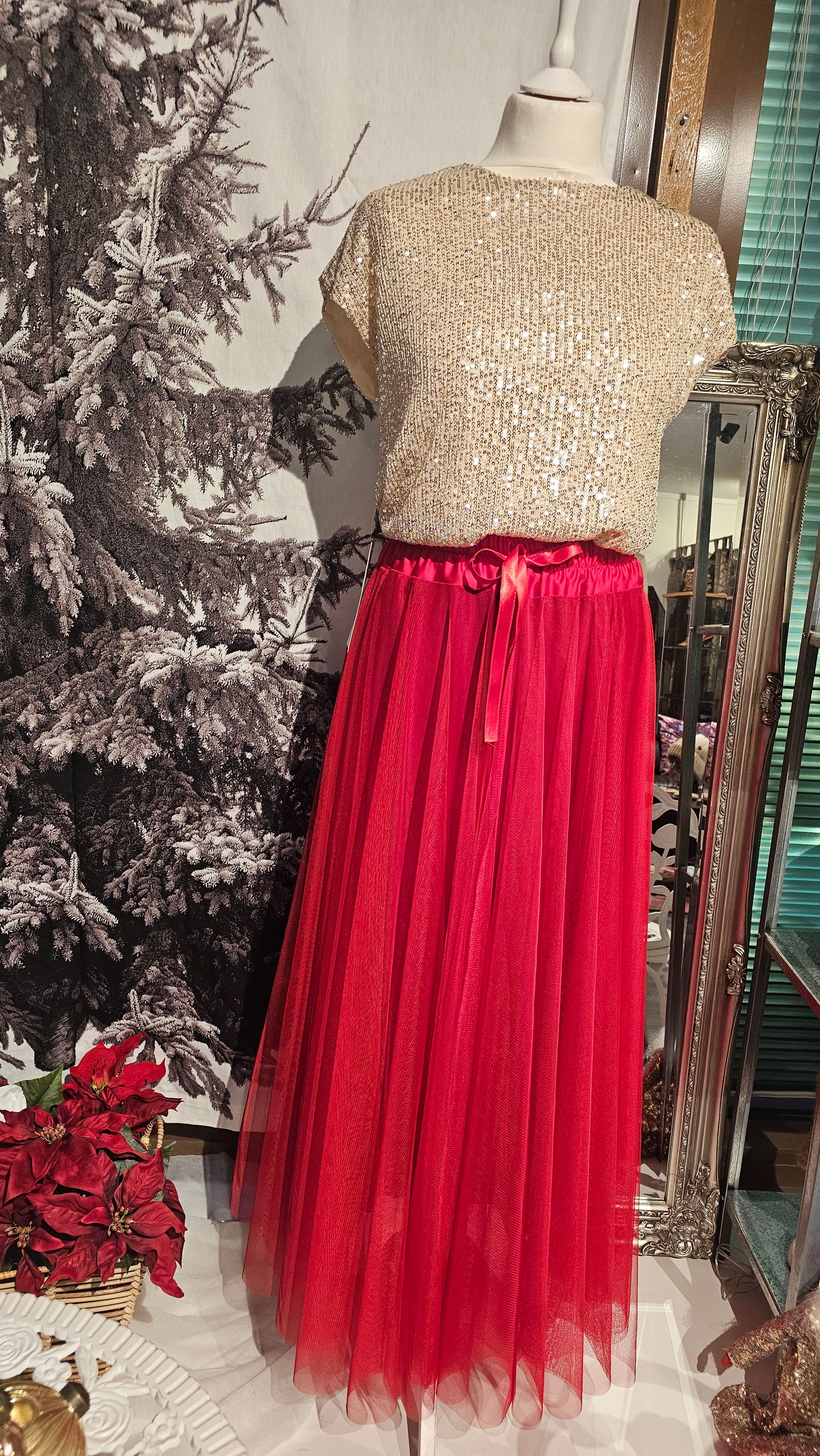 Tämä tyllihame sopii niin neuleiden, silkkipaitojen kuin juhlalaukkujen ja korujen kanssa. Luo nopeasti juhla-asun tai lisää arkipukeutumiseen ripaus glamouria