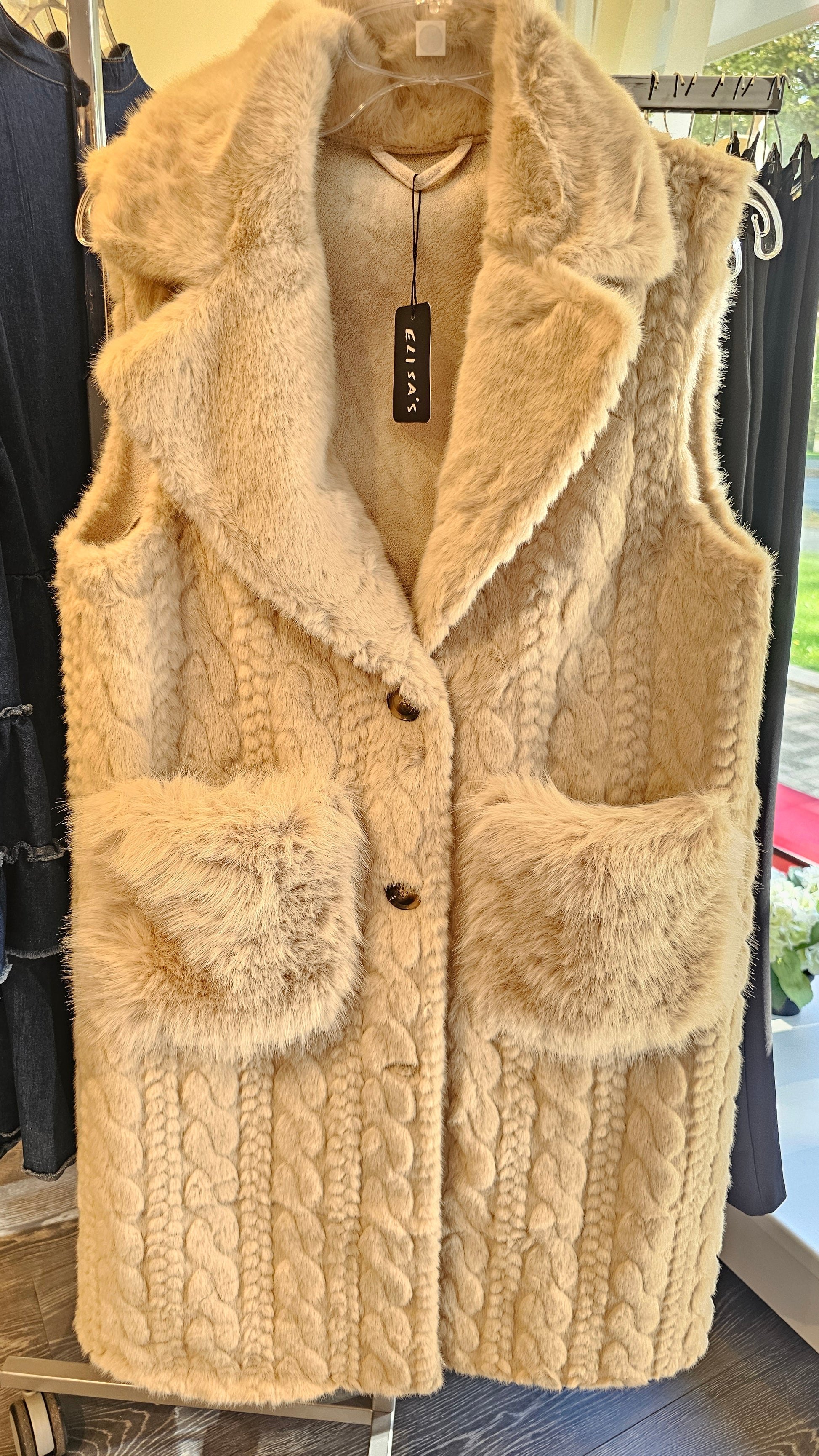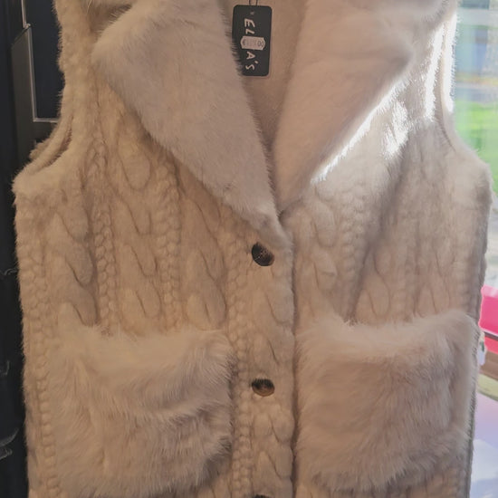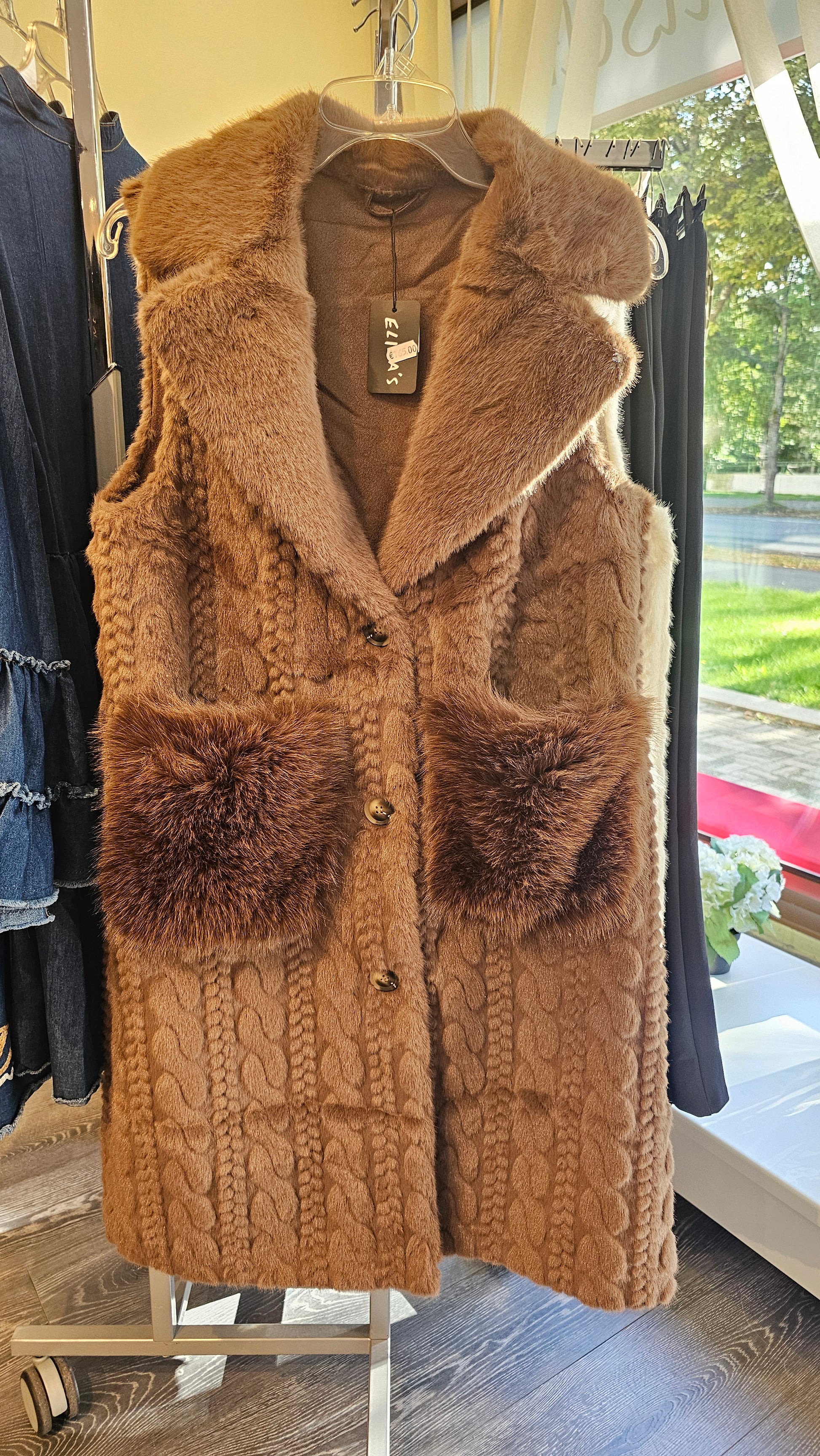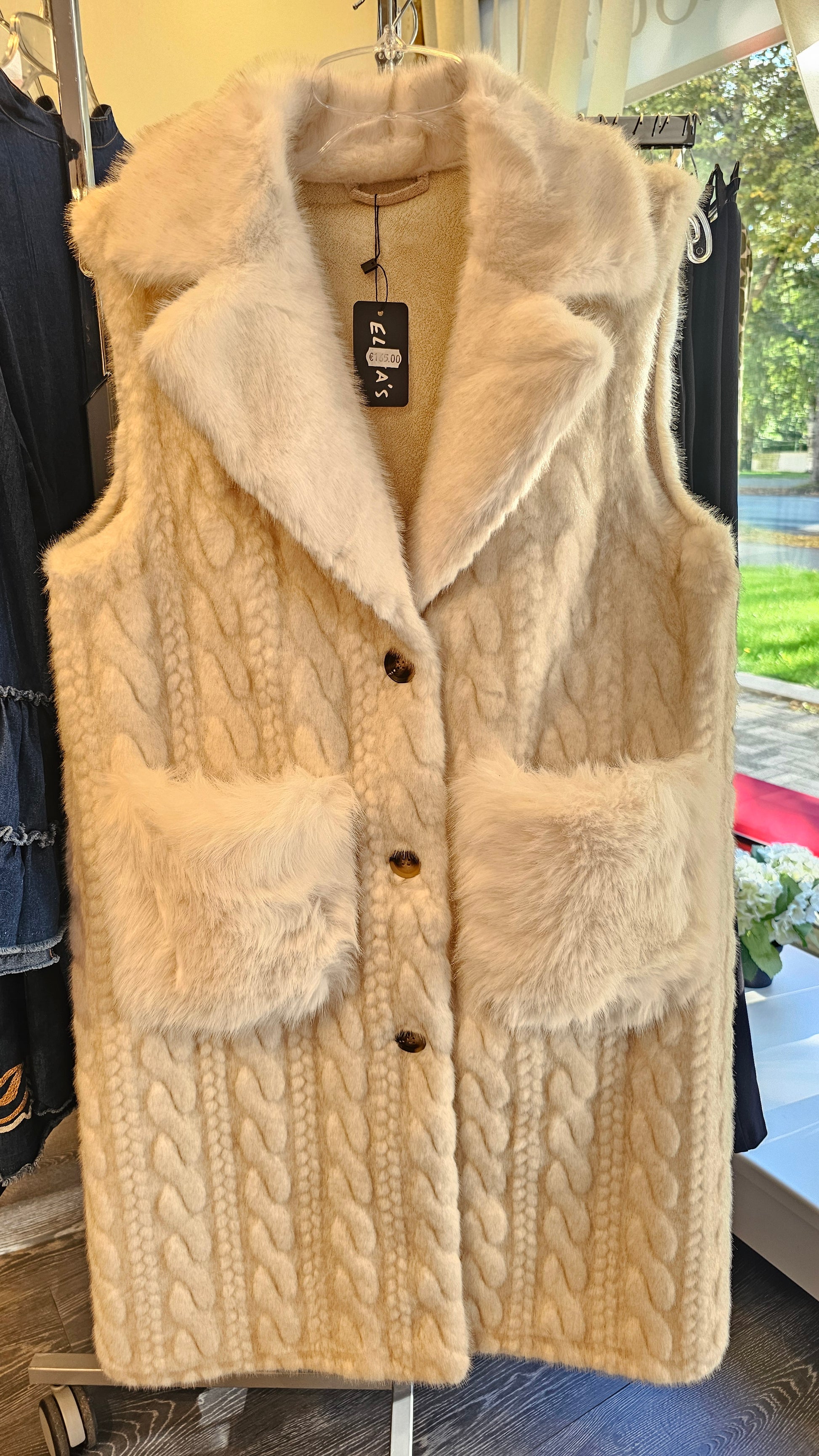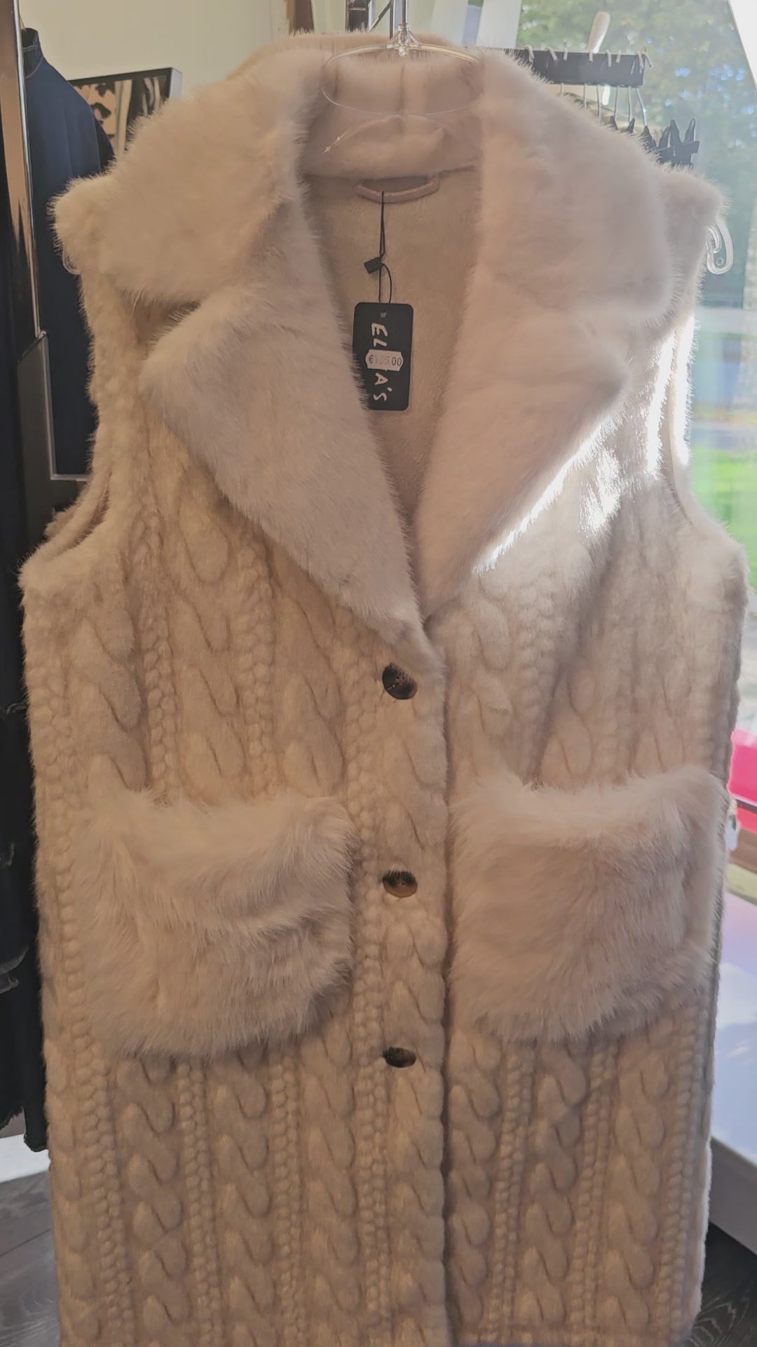 Muhkea neulos ja näyttävät karvataskut tekevät liivistä katseenvangitsijan, joka on samalla lämmin ja mukava päällä.