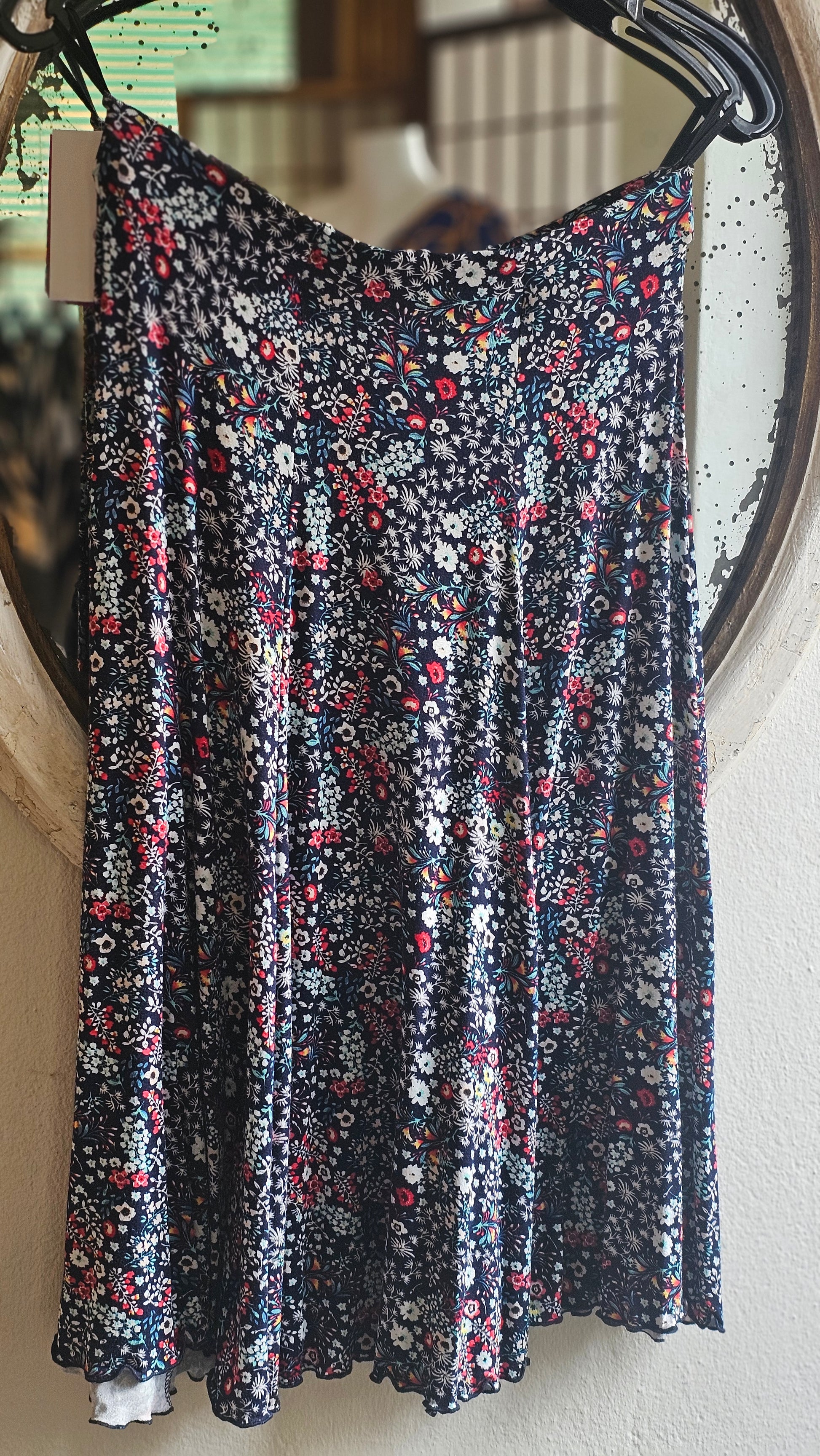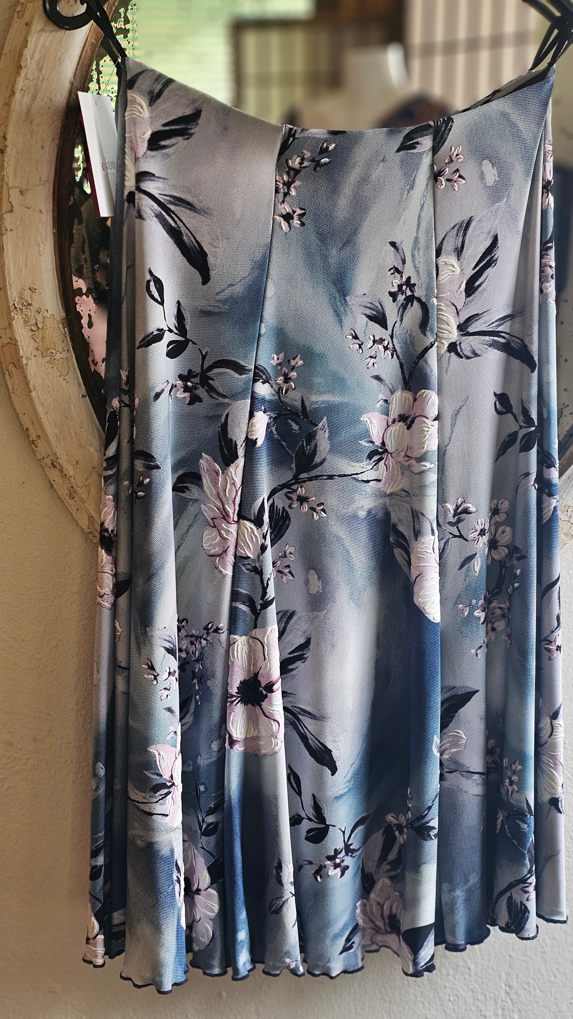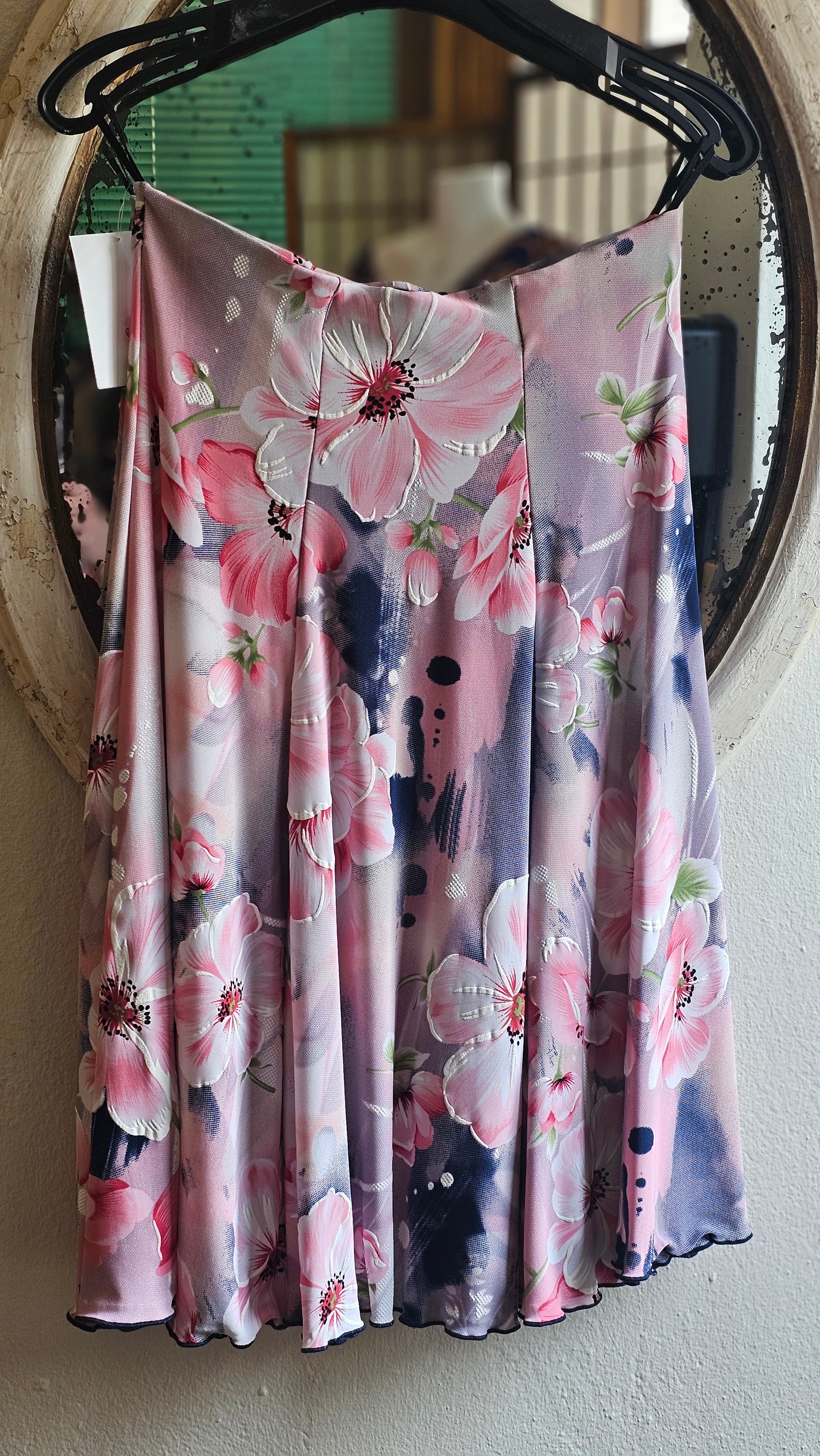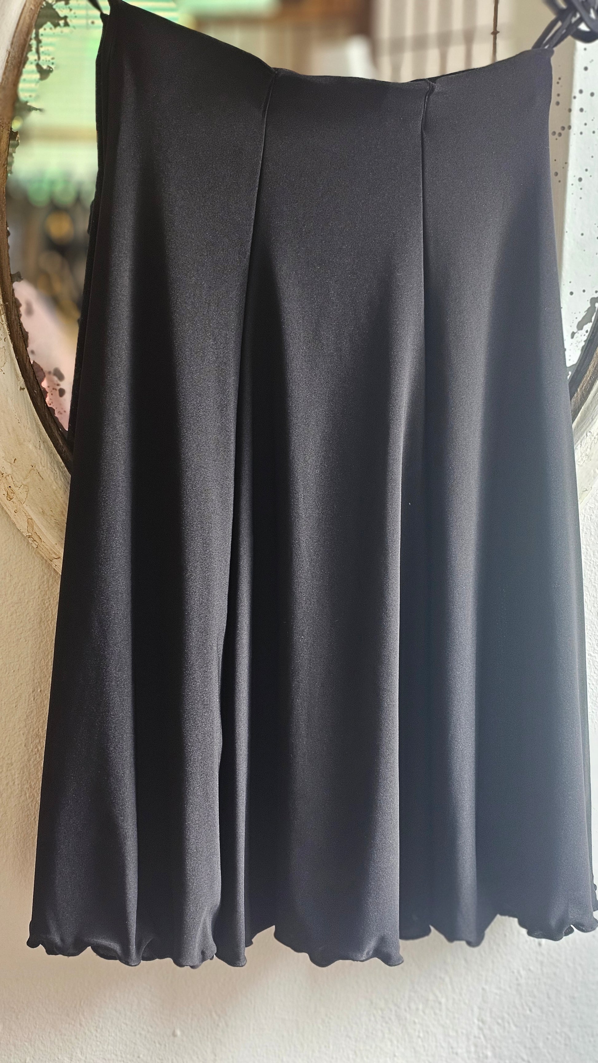 Tätä on toivotta ja nyt vihdoin saatu. Puolihame viskoosia/polyesteriä. Ommeltu useammasta palasta, jolloin tulee ihanan kellomainen. Vyötäröllä leveä kuminauha. Kauniita kankaita joihin on helppo yhdistää yläosaa.